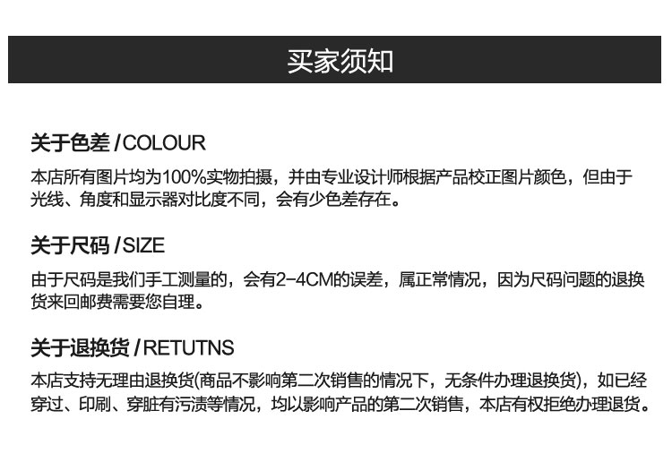 定制類服裝提供修改尺寸服務(wù)。