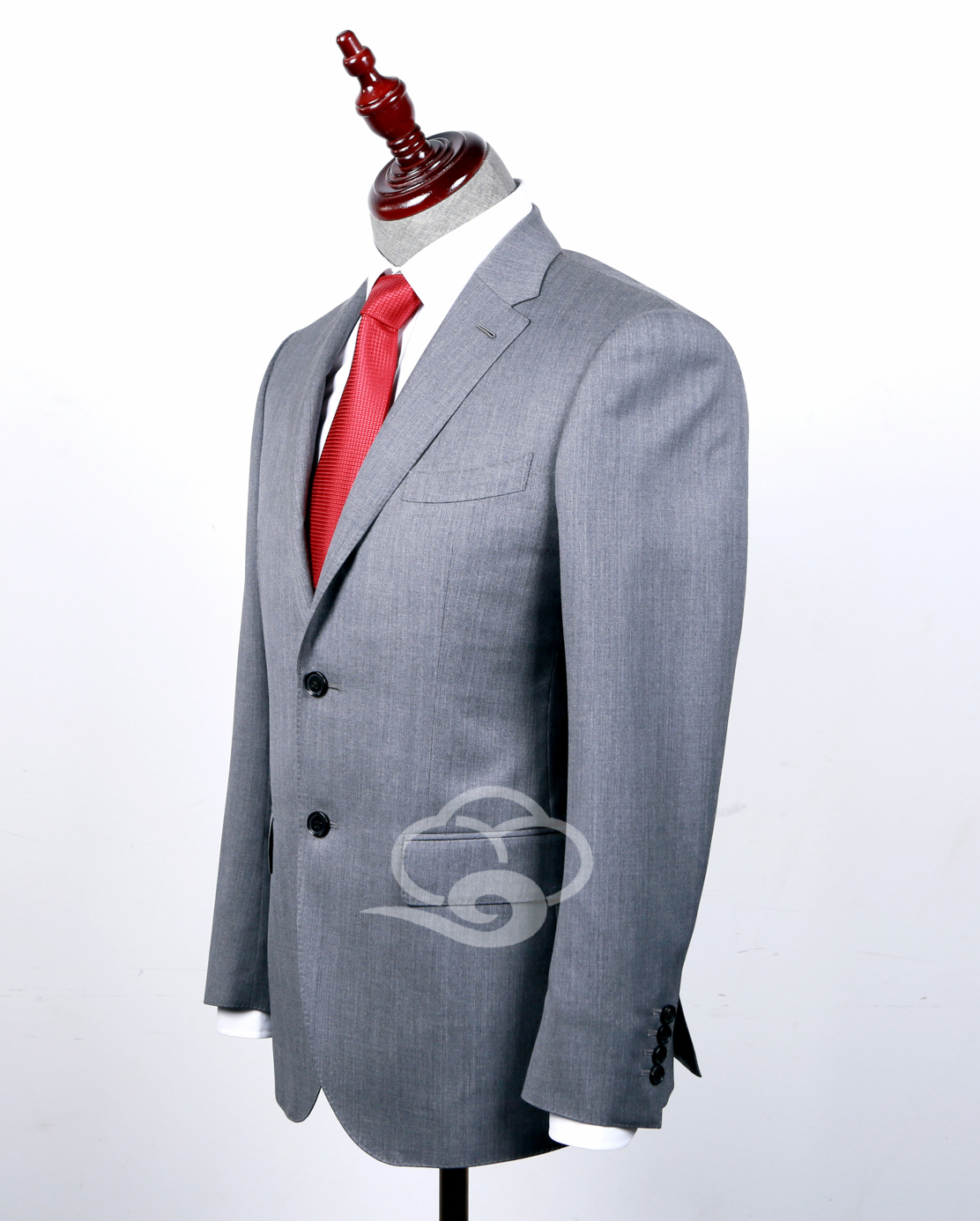 設計理念:這款淺灰色套裝,其面料精選自OMC面料,面料條干均勻、紗線外觀光潔、強力高、面料外觀光澤自然、紋理清晰。此款淺灰色套裝,采用手工半麻襯工藝,彰顯身份。平駁頭設計,帶蓋口袋 ,經(jīng)典單排兩??墼O計,后開衩修飾后背身型。內(nèi)右側防輻射襯里手機袋(防護口袋)、筆兜、名片兜,內(nèi)左側雙嵌線小口袋。
