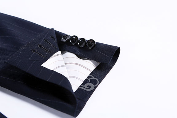 設(shè)計(jì)理念:這款復(fù)古條紋套裝,穩(wěn)重大氣是此款西服的主要風(fēng)格。厚重的面料質(zhì)地更適合秋冬穿著。本款西服面料精選自GRANDE面料,其面料特點(diǎn)明暗線條變化,冷而不僵,雅而不悶。此款復(fù)古條紋套裝,采用手工半麻襯工藝,彰顯身份。帶蓋口袋 ,戧駁頭,經(jīng)典單排兩??墼O(shè)計(jì),后開(kāi)衩修飾后背身型。內(nèi)右側(cè)防輻射襯里手機(jī)袋(防護(hù)口袋)、筆兜、名片兜,內(nèi)左側(cè)雙嵌線小口袋。